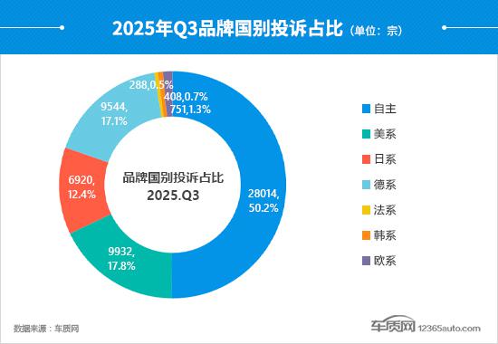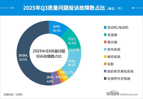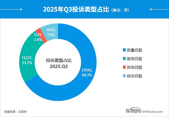 2025年三季度,車質(zhì)網(wǎng)受理汽車產(chǎn)品有效投訴55,941宗(含第三方平臺和后裝輪胎投訴84宗),環(huán)比漲31.4%,同比漲38.3%。本季度受理226個汽車品牌、1,335個車系投訴,比上季度多23個品牌和99個車系。