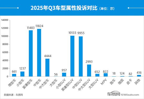三季度,中型車投訴量反彈破萬宗,成投訴最多車型,環(huán)比漲約19%。緊湊型車和緊湊型SUV投訴量也超萬宗,較二季度分別漲37.7%和28.5%。大型SUV投訴量環(huán)比近4倍增長,理想L9等自主品牌新能源車型是主因。