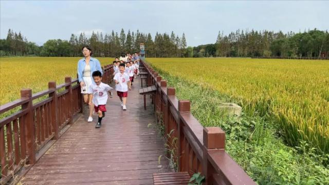 答案正在田野間清晰浮現(xiàn)。在南橋鎮(zhèn)沈陸村憶紅居·紅色主題館旁的稻田里,今年新設了賞景木棧道與彩色氣球打卡點。游客既能通過棧道親近稻田,也可以在館內(nèi)咖啡館小坐,眺望整片金色稻浪。據(jù)了解,周邊約40畝水稻預計將于10月20日左右開始收割,之后將播撒油菜籽,開啟新一輪輪耕。