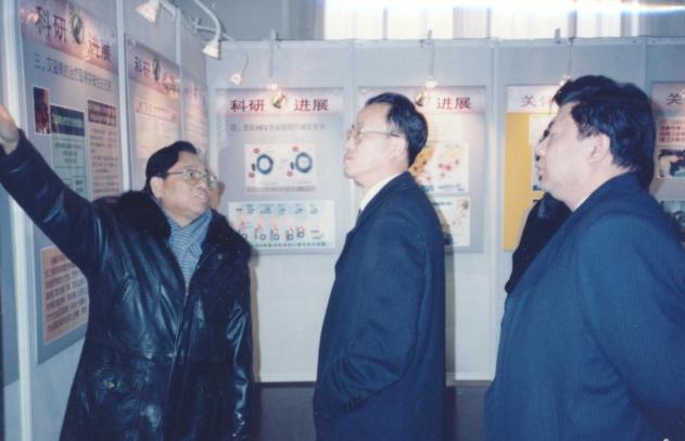 1998年,曾毅(左)在預防艾滋病展覽現場