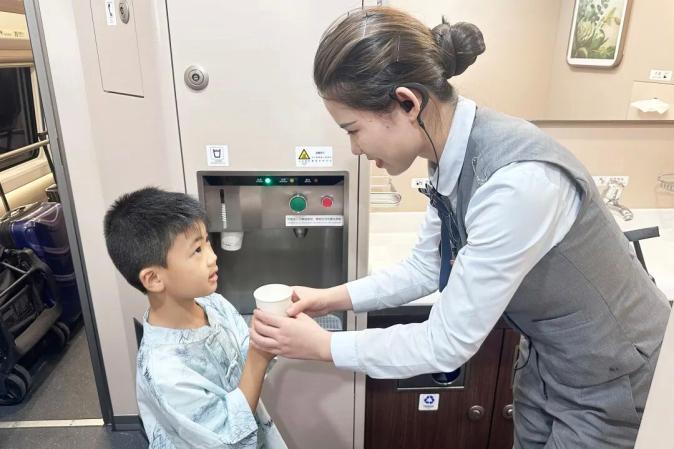 在降雨天氣,列車工作人員也會做好充分準(zhǔn)備。為應(yīng)對降雨天氣,確保旅客人身安全與乘降有序,乘務(wù)員將安全宣傳與現(xiàn)場引導(dǎo)緊密結(jié)合,通過‘多提醒、勤巡視、主動幫’,為旅客構(gòu)筑堅實的雨天安全防線,確保旅途平安。