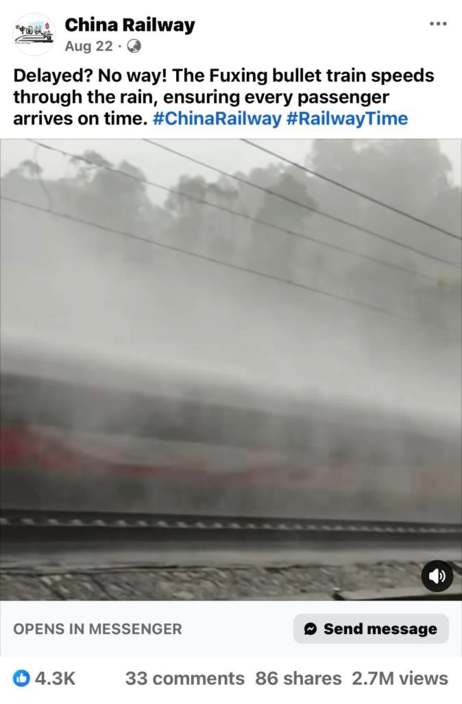 原標(biāo)題:《復(fù)興號在雨里“趕路”,海外網(wǎng)友紛紛點贊!》