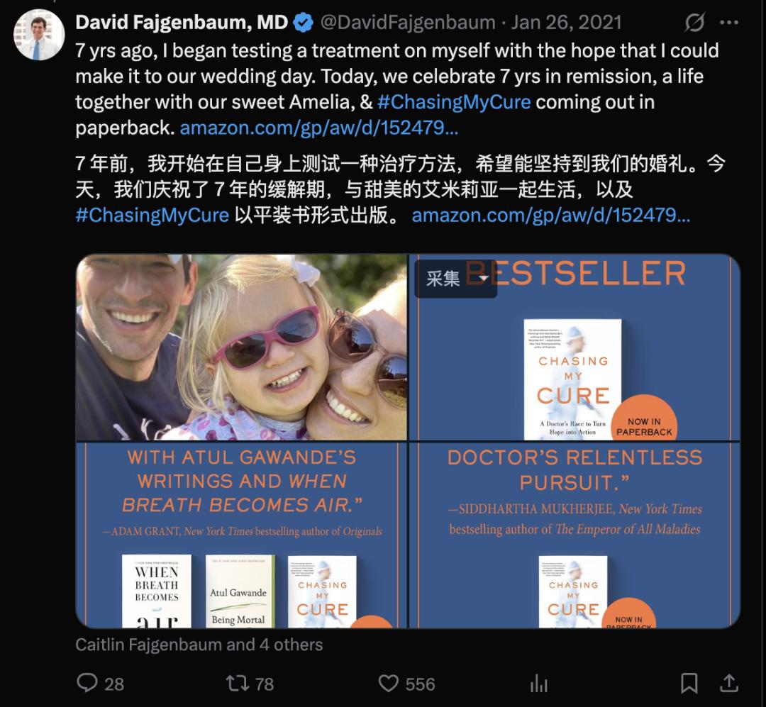 比如,有的病人會利用這段“原以為沒有的時間”送孩子走上紅毯,這對于Fajgenbaum來說,正是他工作的意義所在。