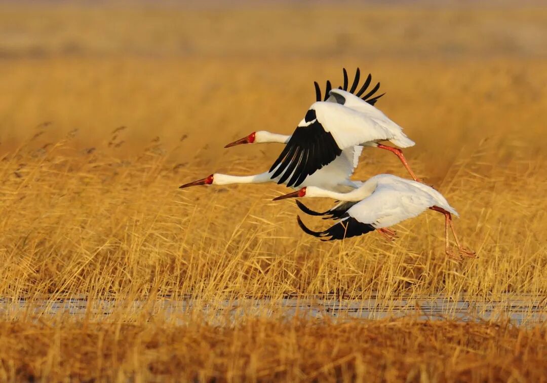 最后一站,從月亮湖驅(qū)車40分鐘來(lái)到莫莫格國(guó)家級(jí)自然保護(hù)區(qū)。這里是東北亞重要的候鳥(niǎo)遷徙通道。走進(jìn)保護(hù)區(qū),沿著木棧道深入濕地,可見(jiàn)成片蘆葦蕩中,白鶴邁著長(zhǎng)腿覓食,東方白鸛展開(kāi)大翅低空滑翔,姿態(tài)優(yōu)雅靈動(dòng)。遠(yuǎn)處水面上,雁群排成“人”字隊(duì)形,鳴叫著飛向遠(yuǎn)方,似在與濕地告別。在此,你不僅能邂逅珍稀候鳥(niǎo),更能感受人與自然和諧共處的美好。