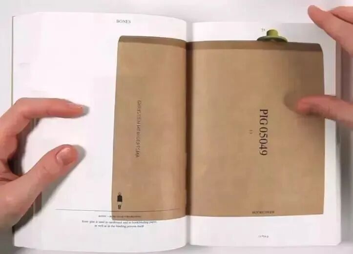 這本書(shū)封面設(shè)計(jì)樸素,書(shū)脊上裝飾著一個(gè)亮黃色圓形塑料標(biāo)簽,這其實(shí)是養(yǎng)殖場(chǎng)用的耳標(biāo),是豬活過(guò)的證明。若從書(shū)架上抽下這本書(shū),還能在封底看到一枚檢疫章,這是豬死去的標(biāo)志:它在屠宰場(chǎng)被宰殺,檢疫合格后將作為商品進(jìn)入市場(chǎng)。