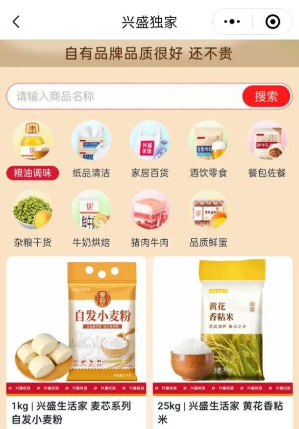 在商品環(huán)節(jié),興盛優(yōu)選也積累了自有體系。興盛小程序內的“興盛獨家”專區(qū),有“興盛生活家”自營商品,涵蓋多個品類,供應商多為湘鄂贛三省本地廠家,選品、定價有差異化。