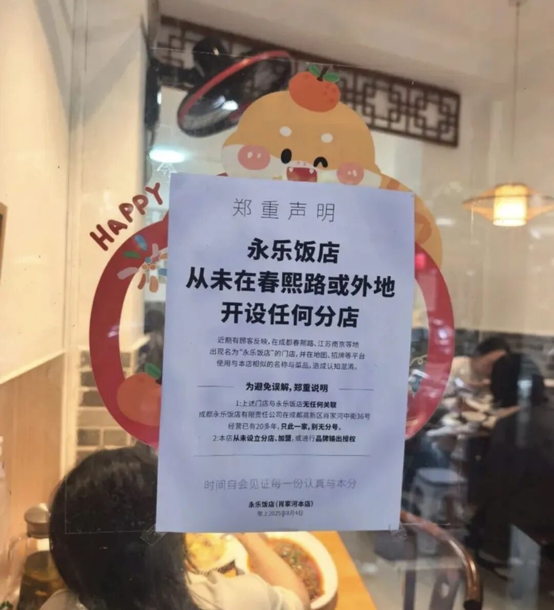 比如經(jīng)營(yíng)40年的 “尹記永樂(lè)飯店”,被仿冒店冠以 “春熙路總店” 名義,宣稱(chēng) “三代人飯?zhí)谩保?/p>