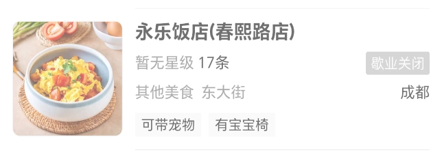 (目前永樂(lè)飯店春熙路店已經(jīng)顯示歇業(yè)關(guān)閉)