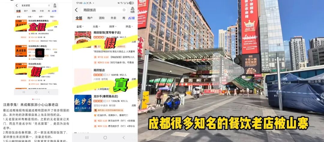 游客誤打卡后,會(huì)將不符預(yù)期的體驗(yàn)差評(píng)錯(cuò)評(píng)給正牌老店;食客分不清真假,部分品牌甚至出現(xiàn) “山寨店開(kāi)店比正店火” 的荒誕局面。