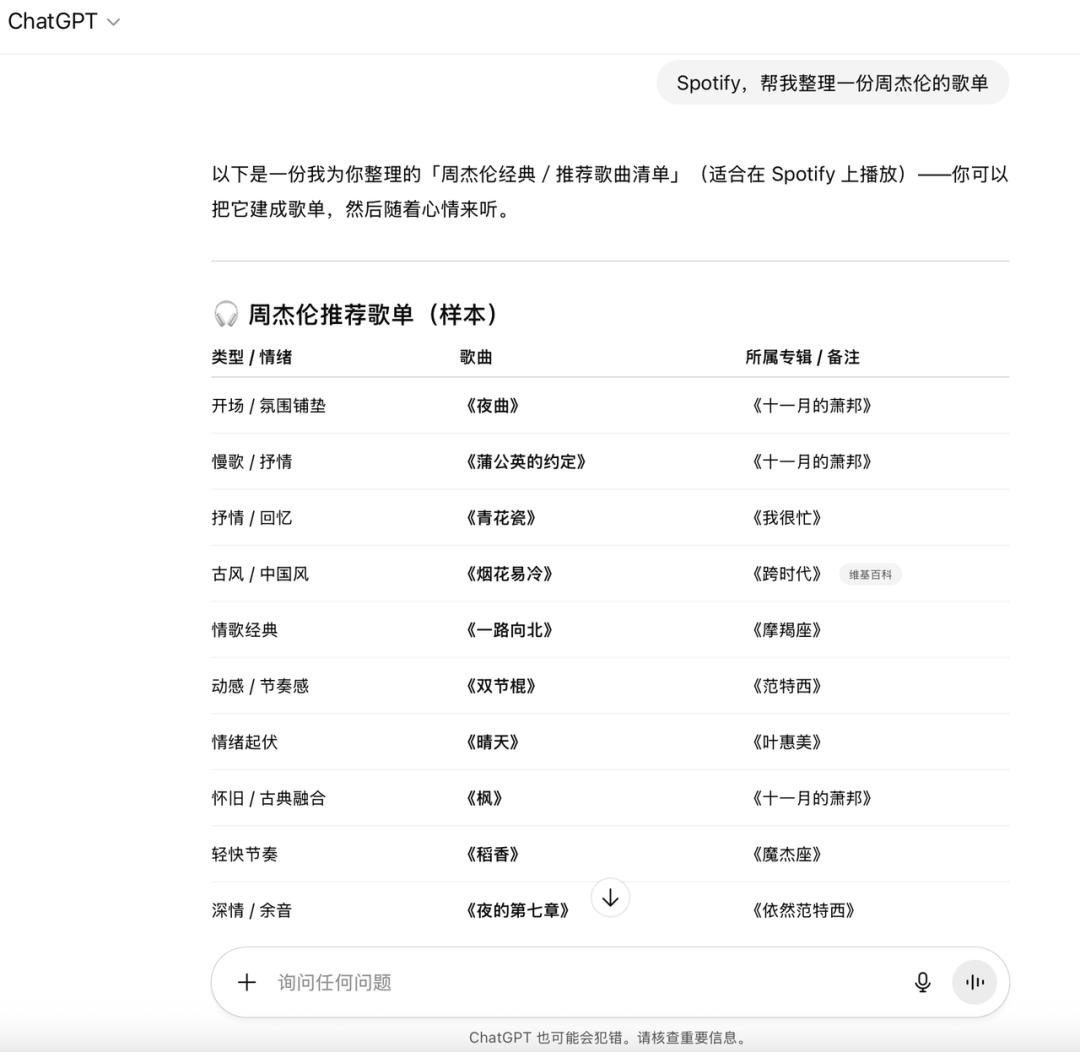 嘗試喚起Zillow和Spotify,Zillow打開速度慢,Spotify未成功喚起,ChatGPT整理了文字歌單。