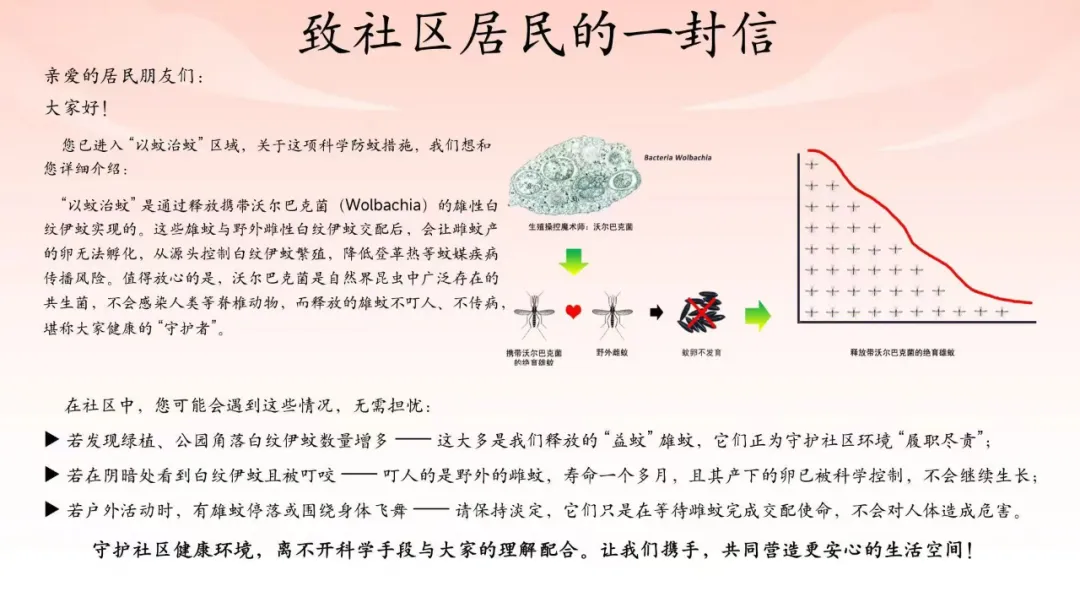 “以蚊治蚊”工作是開(kāi)平市創(chuàng)新生物防治技術(shù)、精準(zhǔn)防控蚊媒傳染病的體現(xiàn)。通過(guò)定期投放“絕育雄蚊”,將疫情防控工作從“人找蚊”轉(zhuǎn)變?yōu)椤拔谜椅谩?,既能治?biāo)又能治本。目前,開(kāi)平市已在長(zhǎng)沙街道、三埠街道、月山鎮(zhèn)等地累計(jì)設(shè)置了500多個(gè)“益蚊擴(kuò)散站”,有效降低了蚊媒密度,為市民提供了安全宜居的生活環(huán)境。