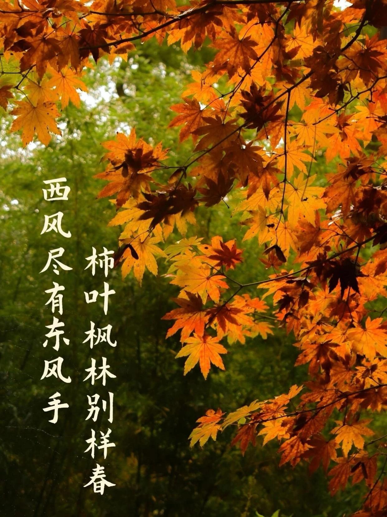 當(dāng)山風(fēng)輕輕掠過(guò)時(shí),整片楓林沙沙作響,就好像大自然不小心打翻了調(diào)色盤(pán),把橙紅、金黃、深褐等色彩盡情潑灑在層巒之間。