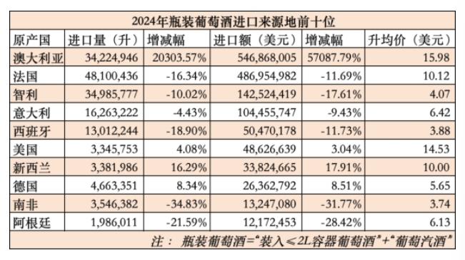 實際上,國內(nèi)紅酒的頹勢已近十年,產(chǎn)量和銷量雙雙下跌。行業(yè)數(shù)據(jù)顯示,中國葡萄酒產(chǎn)量從2015年的142萬千升,降至2024年的11.8萬千升,僅為峰值的8.3%;市場規(guī)模也從2015年的300億元萎縮至2024年的不足50億元。即便是曾經(jīng)更受歡迎的進口紅酒,近年來除澳大利亞因關稅政策有所反彈外,從法國到中南美洲的各價位產(chǎn)品進口量也普遍下滑。