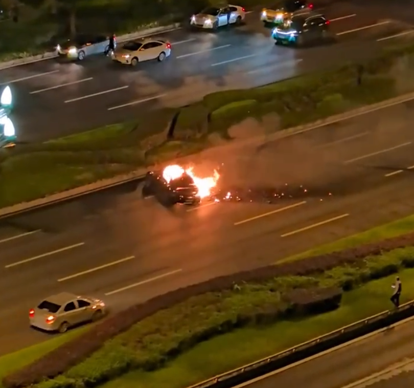 網絡流傳的行車記錄儀畫面和現場信息顯示,事發(fā)時天府大道路面車少,涉事車輛快速超越前方一輛時速104km/h的視頻車后不久,就發(fā)生事故并燃起明火。