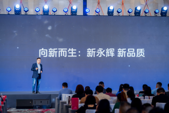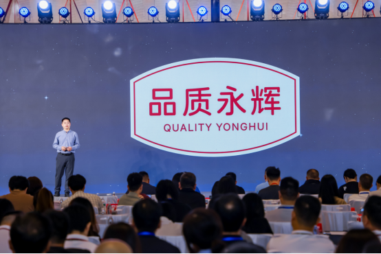 浙江輝聯(lián)供應(yīng)鏈有限公司董事長龐小偉現(xiàn)場發(fā)布“品質(zhì)永輝”