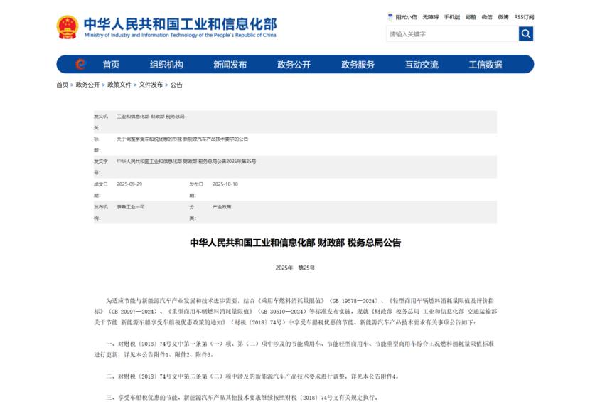 購車決策即將改變。2025年10月,工業(yè)和信息化部、財政部、稅務(wù)總局三部門聯(lián)合發(fā)布了2026 - 2027年新能源汽車車輛購置稅減免新規(guī)。該新規(guī)以升級技術(shù)門檻的方式,為快速發(fā)展的新能源汽車產(chǎn)業(yè)制定了新的規(guī)則。