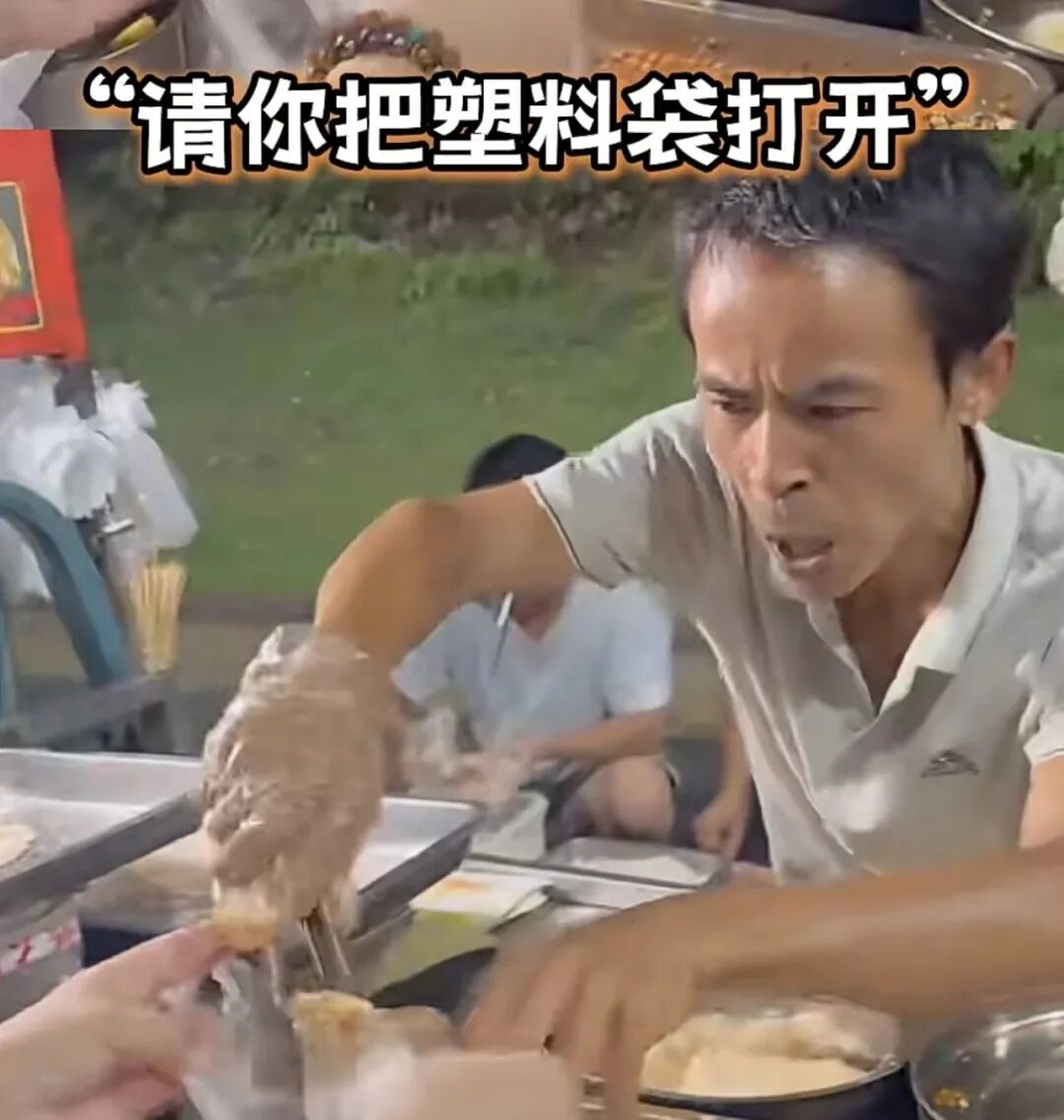 多年的擺攤經(jīng)歷,讓他很會和顧客打交道。他發(fā)現(xiàn)慢炸的雞排外酥里嫩,但擺攤利潤低,對效率要求高。為了保證質(zhì)量和效率,他讓顧客自己打開袋子。當他喊出“請不要和我聊天,你現(xiàn)在的任務(wù)是打開塑料袋去排隊”時,顧客也會笑著照做?!坝⑹街形摹钡谋澈?,是他作為市井商販的商業(yè)智慧。