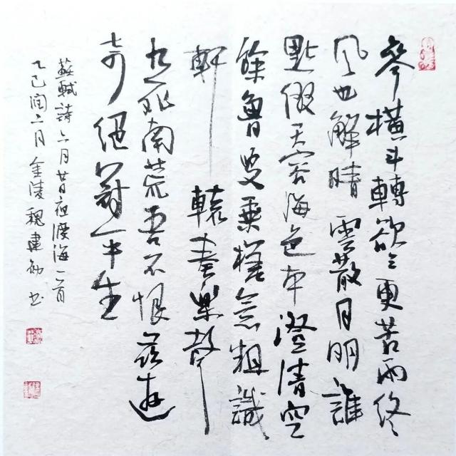 作為中國書法家協(xié)會會員、江蘇省直書法家協(xié)會顧問、南京市書法家協(xié)會顧問,魏建勛的書法成就得到了業(yè)界的廣泛認(rèn)可。他的作品兩次入選中國書法最高獎“蘭亭獎”,七次入選“全國展”與“全國中青展”并獲獎,還多次參加“全國行草書展”等專項展覽。此外,他在“塞克勒杯”“中華杯”等全國性、國際性書法大賽中十三次榮獲金獎,作品被中國文學(xué)博物館、江蘇省美術(shù)館等多家權(quán)威機(jī)構(gòu)收藏,兩次獲得南京市人民政府頒發(fā)的文學(xué)藝術(shù)最高獎(創(chuàng)作獎),其藝術(shù)實力和影響力可見一斑。