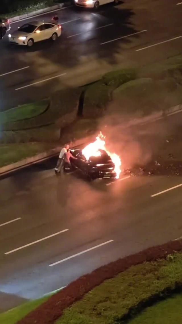 行車(chē)記錄儀畫(huà)面及現(xiàn)場(chǎng)信息顯示,事發(fā)時(shí)天府大道路面車(chē)流較少,涉事車(chē)輛以較快速度超越前方一輛時(shí)速為104km/h的視頻車(chē),不久后發(fā)生碰撞事故并燃起明火?,F(xiàn)場(chǎng)有多人參與救援,有4人合力試圖“拳打腳踢”車(chē)門(mén)但未成功,隨后有人使用滅火器對(duì)車(chē)輛進(jìn)行滅火。