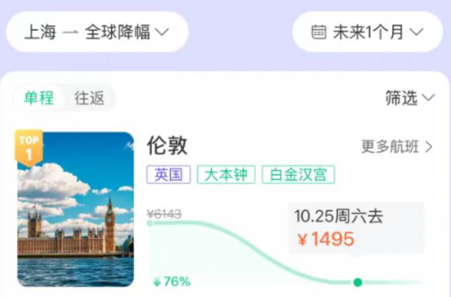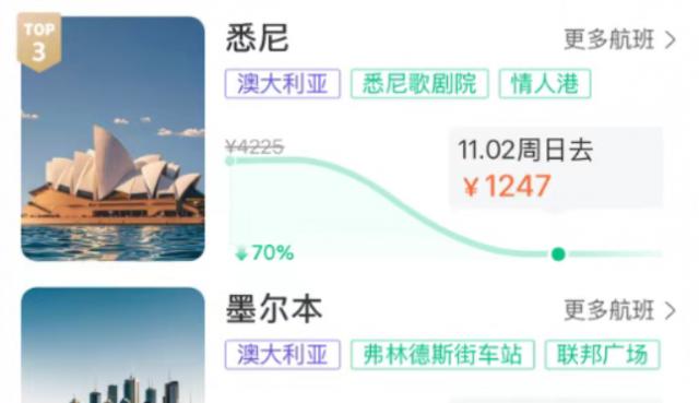 出境游方面,機(jī)票也出現(xiàn)了不同程度的降價(jià)。上海出發(fā)前往倫敦、悉尼、墨爾本等熱門旅游地,機(jī)票票價(jià)降幅都超過了70%。
