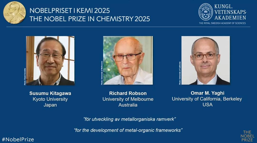 2025年諾貝爾化學獎授予了金屬有機框架(MOF)材料的開創(chuàng)者們。