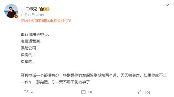 快科技10月13日消息,國慶中秋長假后,“為什么貸款騷擾電話變少了”這一話題沖上熱搜。