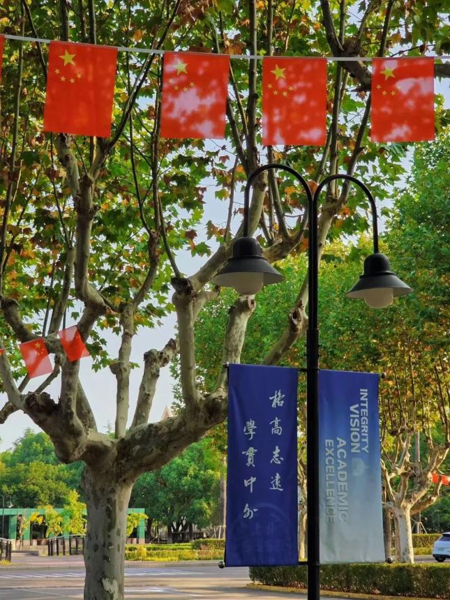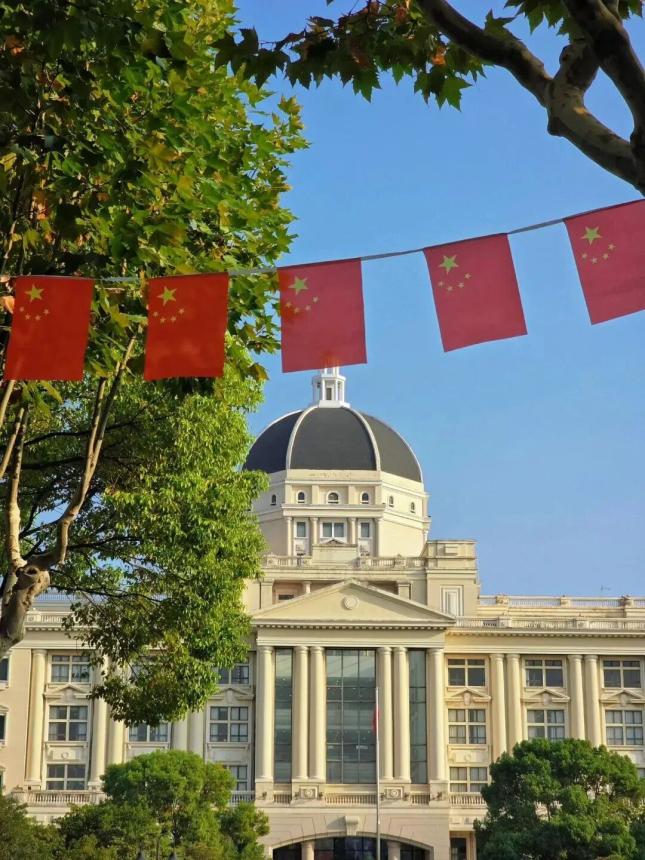 上外校園里的中國紅,是獨(dú)有的浪漫底色。當(dāng)秋風(fēng)拂過道路兩旁的梧桐,上外校園已悄然換上了最動人的“國慶限定皮膚”。