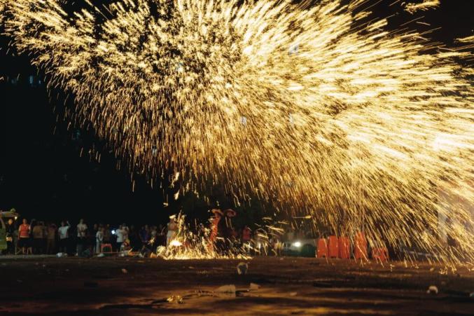 精彩不斷上演,第二晚,武義漢族民間社團(tuán)為村民帶來了具有漢族特色的歌舞節(jié)目,與少數(shù)民族節(jié)目相互呼應(yīng);非遺“打鐵花”“火壺”等震撼亮相,傳承千年的火花在夜空中綻放,猶如璀璨星辰;獨(dú)具武義本地特色的畬族婚嫁表演,生動(dòng)地展現(xiàn)了民俗風(fēng)情,引得臺(tái)下掌聲和喝彩聲此起彼伏。