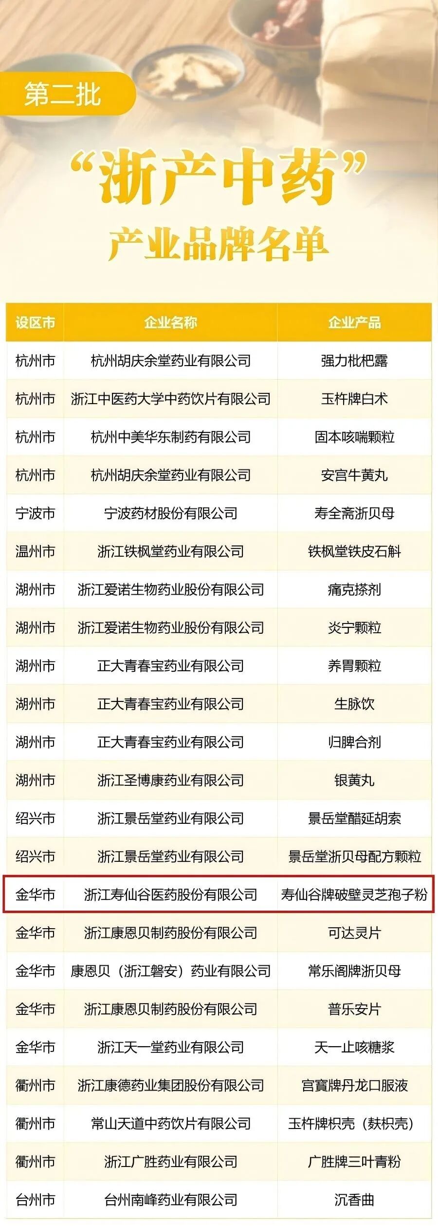近日,浙江省經(jīng)濟(jì)和信息化廳等八部門印發(fā)《關(guān)于公布第二批“浙產(chǎn)中藥”產(chǎn)業(yè)品牌名單的通知》,浙江壽仙谷醫(yī)藥股份有限公司的壽仙谷牌破壁靈芝孢子粉入選。