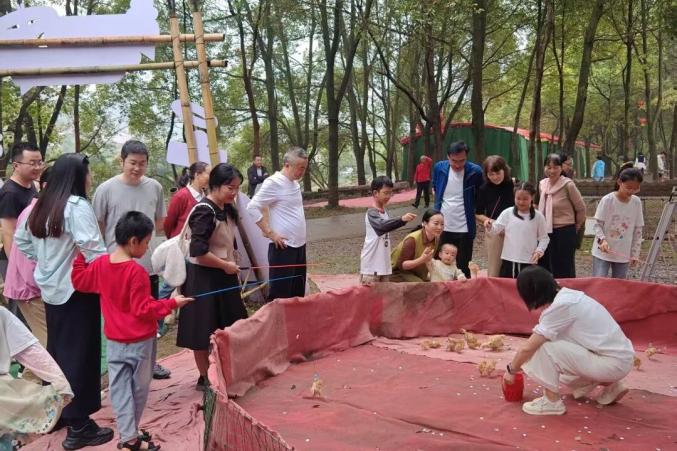 △三峽水鄉(xiāng)景區(qū)圍繞農耕親子主題,推出套大鵝、釣小雞、推獨輪車等趣味游戲以及卡通NPC巡游、露天電影、戶外燒烤、親子晃晃漂等項目