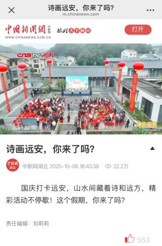 從景區(qū)內此起彼伏的歡笑聲,到社交媒體上滿屏的 “打卡好評”,遠安用一場場誠意滿滿的文旅活動,讓游客在雙節(jié)期間收獲了歸屬感與幸福感。