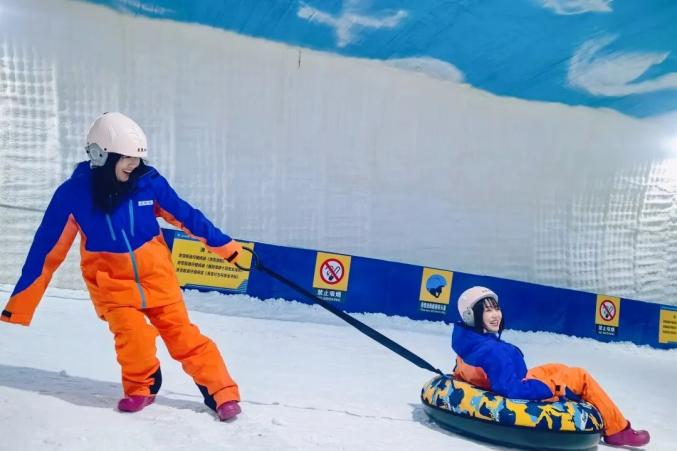 △武陵峽口景區(qū),游客在洞穴探險、體驗溶洞滑雪