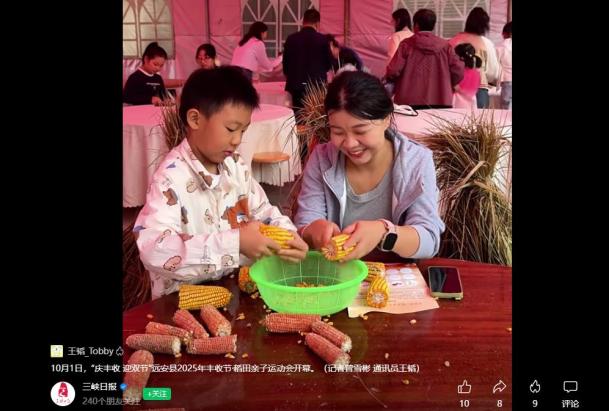 遠安縣緊扣“豐收”“親子”兩大核心,精心策劃并落地多場特色活動。在三峽水鄉(xiāng)景區(qū)“豐收節(jié)?稻田親子運動會”活動現(xiàn)場,游客不僅能親身參與稻田里的趣味競技,在勞作互動中觸摸豐收的溫度,還能透過畫筆與畫作感受田野的生機,沉浸式體驗田園生活的愜意。