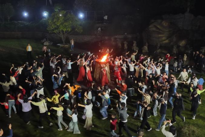 △三峽龍隱谷景區(qū)的“天女散花”表演以及熱鬧的篝火晚會