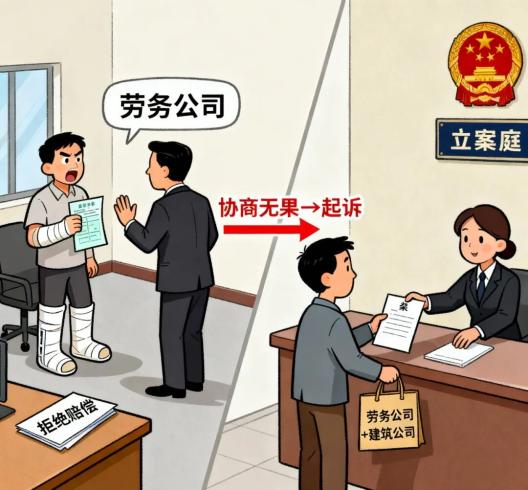 2025年初,康某經(jīng)某勞務(wù)公司介紹,到西峽某學(xué)校工地干活。工作時(shí),康某不慎摔倒骨折。帶班工頭立刻送他去醫(yī)院,并墊付6000元醫(yī)療費(fèi)。但康某向勞務(wù)公司要后續(xù)費(fèi)用時(shí),遭其拒絕。多次協(xié)商無果后,康某將勞務(wù)公司和工地承包商建筑公司告到西峽法院,要求賠償損失。