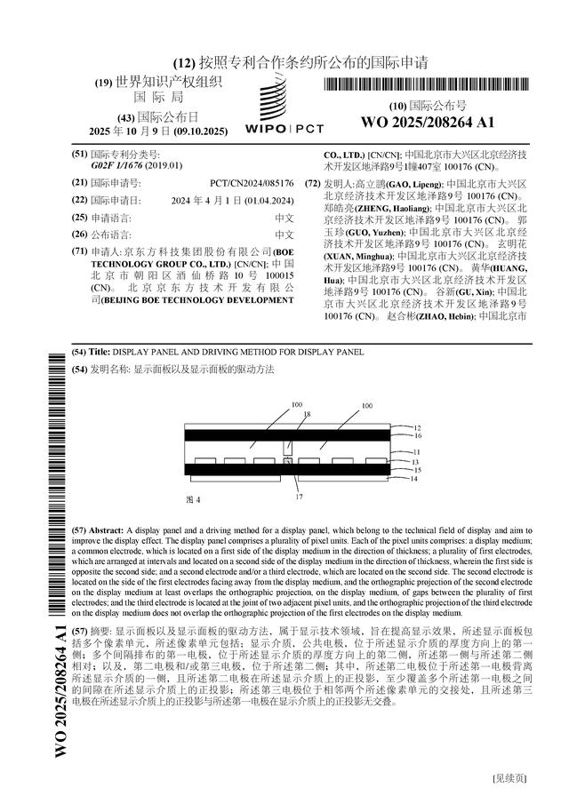 京東方A公布“顯示面板及驅(qū)動(dòng)方法”國(guó)際專(zhuān)利申請(qǐng)