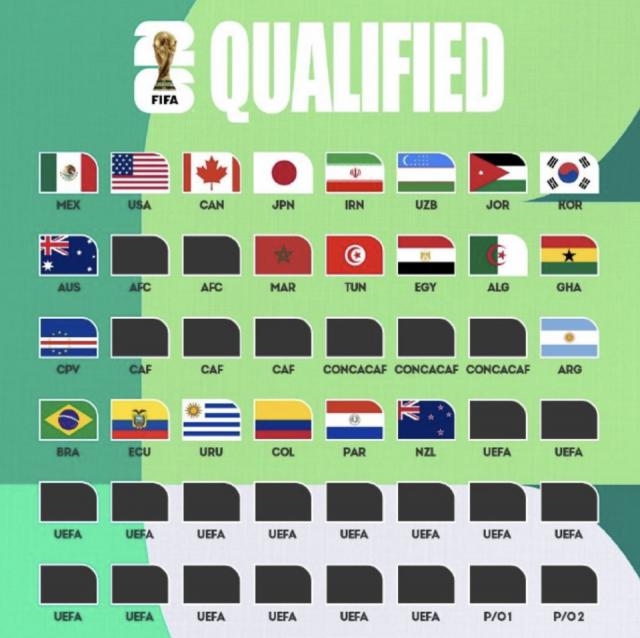 2026世界杯48席已確定22席:含53萬人口小國與3大新軍,國足又無緣