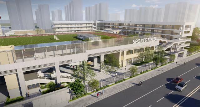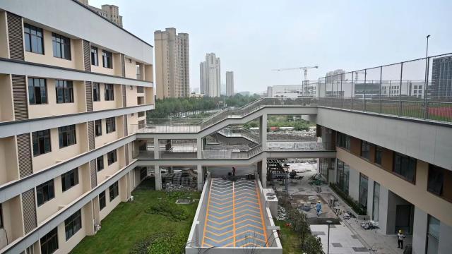 代建方上海嘉定住房建設(shè)發(fā)展(集團(tuán))有限公司項(xiàng)目經(jīng)理齊文棒介紹,學(xué)校建有教學(xué)樓、多功能廳、學(xué)生宿舍和綜合樓,總建筑面積約4.63萬平方米。特別的是,綜合樓屋頂創(chuàng)新打造了一個(gè)空中操場(chǎng)。