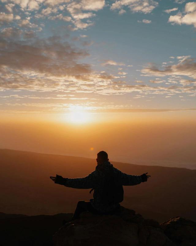 有一張照片讓我駐足許久。晨光初照,友人站在山巔,衣袂隨風飄動,身后云海翻涌,宛如天外仙子。配文只有四個字:“好美,值得?!?/p>