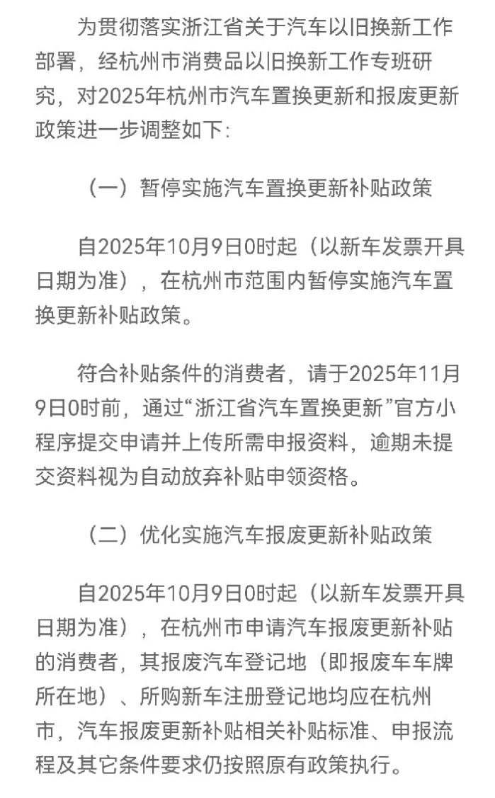 華夏日報,首輪補(bǔ)貼資金池快速消耗,多地緊急“剎車”暫停汽車置換補(bǔ)貼、