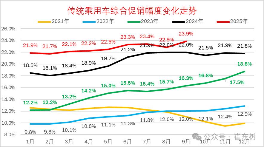 數(shù)據(jù)顯示,9月傳統(tǒng)燃油車的促銷穩(wěn)定在23.9%的水平,較上月增加1個點,較同期增加1.9個百分點。此前,合資品牌推出的一口價整車政策效果顯著。君威、軒逸、天籟、卡羅拉等燃油車型在優(yōu)惠的一口價政策下,銷量大幅提升。