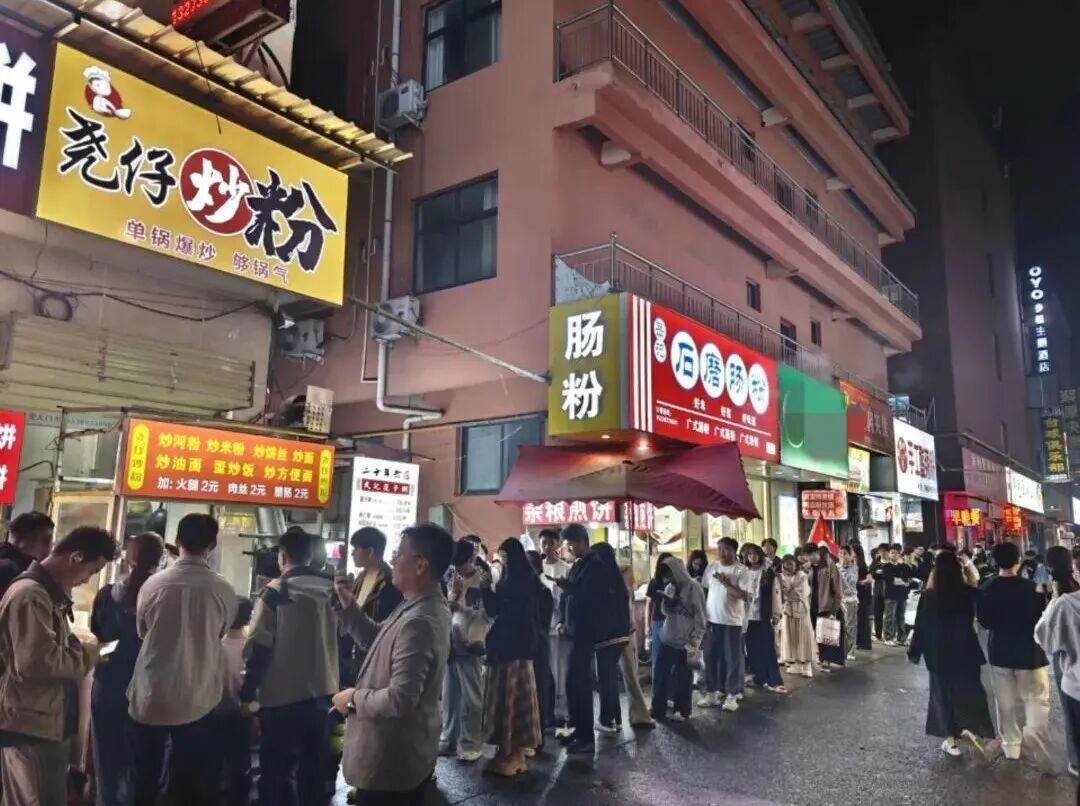同時,“流量造神”速度加快。炒粉哥攤位前一天還冷清,第二天就因一條短視頻爆火排起長隊;“雞排哥”一夜?jié)q粉數(shù)萬成“攤王”。