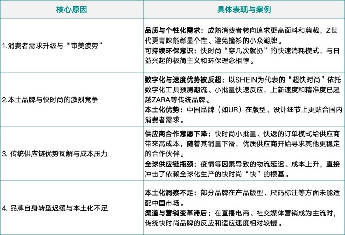 國際快時尚品牌從流量密碼走向衰退,核心原因是其傳統(tǒng)商業(yè)模式難以適應消費者需求變化、激烈的市場競爭以及全球供應鏈格局調(diào)整。以下表格簡要梳理了這些核心原因及其具體表現(xiàn):