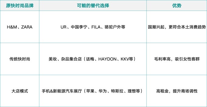 3、租金收益優(yōu)化:快時尚的“低租金”模式不再劃算