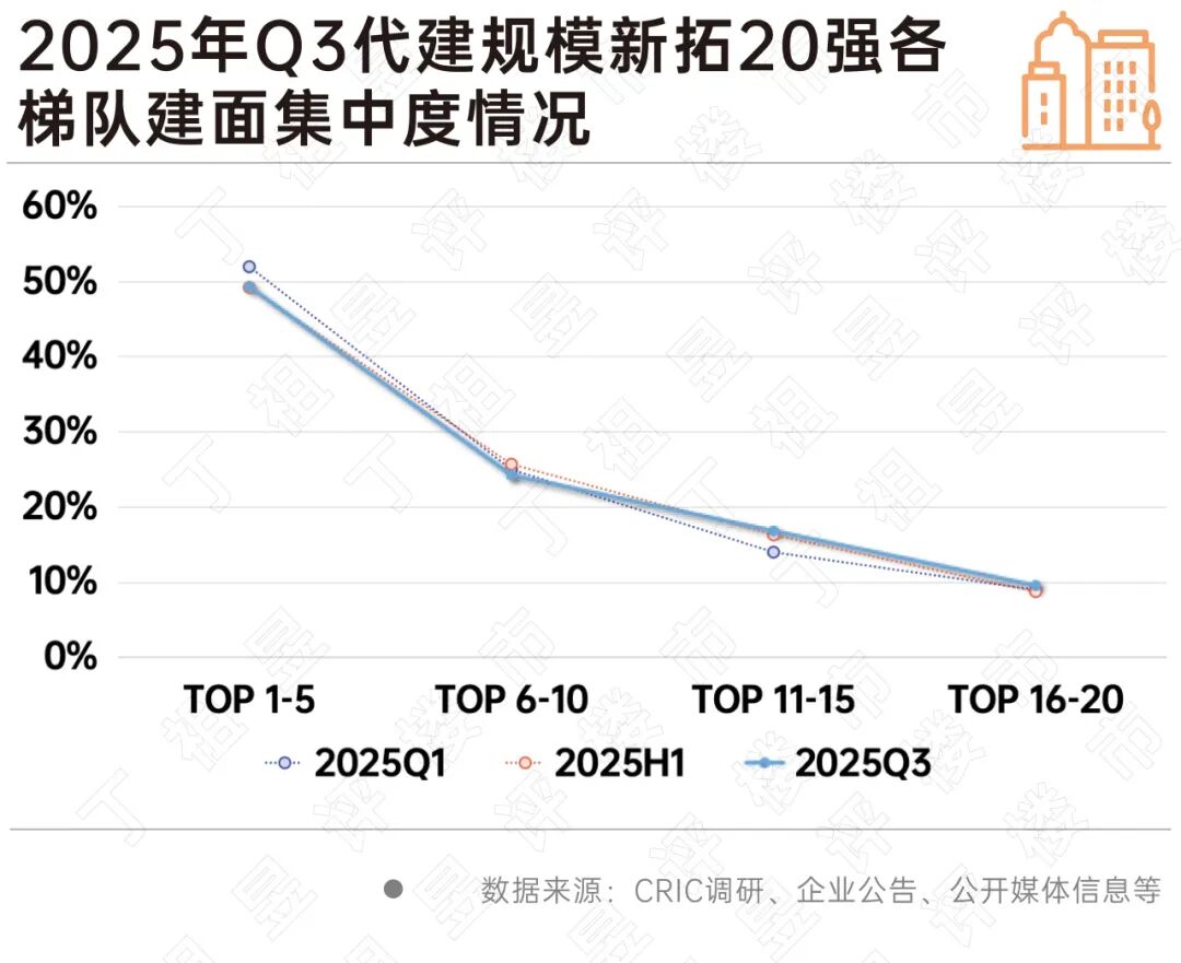2025年前三季度,代建新拓TOP5企業(yè)占比維持在49%的高位,行業(yè)高集中度態(tài)勢依舊。頭部企業(yè)占據(jù)大量市場份額,其他企業(yè)突圍難度較大。