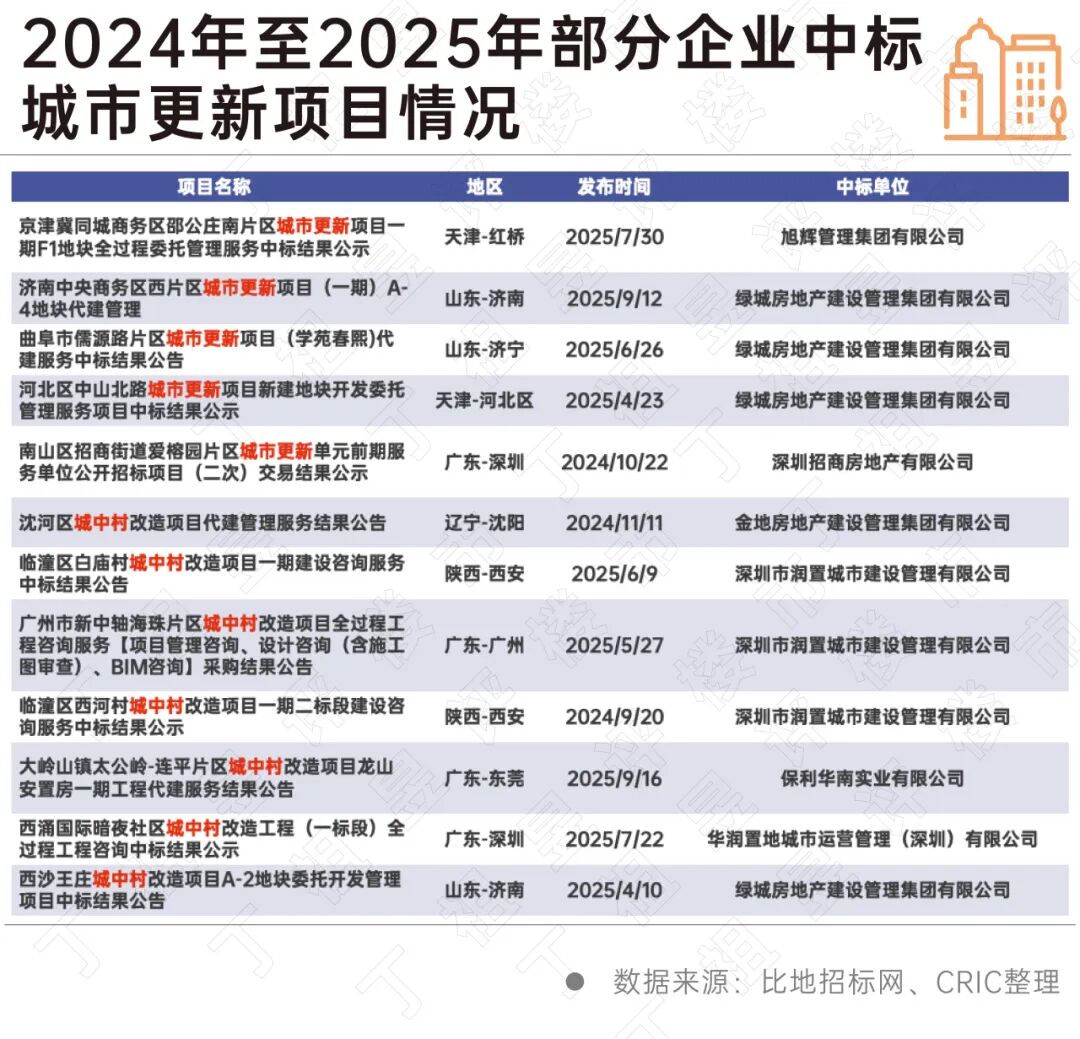 據(jù)CRIC統(tǒng)計,2024年起,全國中標金額在500萬以上的城市更新項目共198個,其中2024年102個,2025年至今至少96個,達2024年全年的94%,預(yù)計全年總量將超2024年,城市更新項目中標數(shù)量持續(xù)增加。