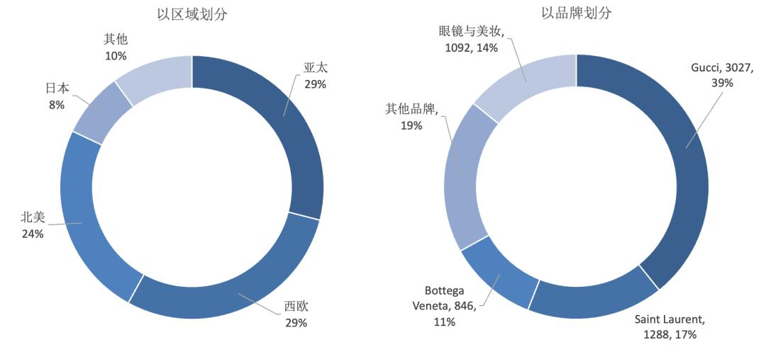 同期,核心品牌Saint Laurent收入同比下滑10%,其他品牌收入同比下滑14%。核心品牌中,只有Bottega Veneta收入同比正增長(zhǎng)2%,收入占比約11%;眼鏡&美妝收入同比增長(zhǎng)3%。