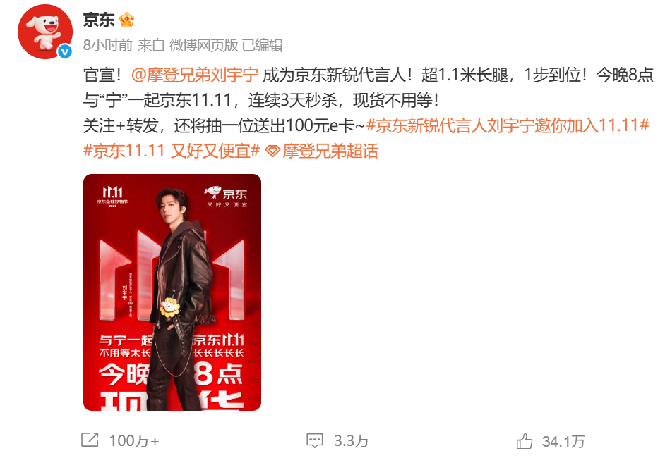除了推出新車,10月14日,京東官宣劉宇寧成為京東新銳代言人,引發(fā)高度關(guān)注。劉宇寧是中國內(nèi)地流行樂男歌手、影視演員,也是摩登兄弟樂隊主唱。