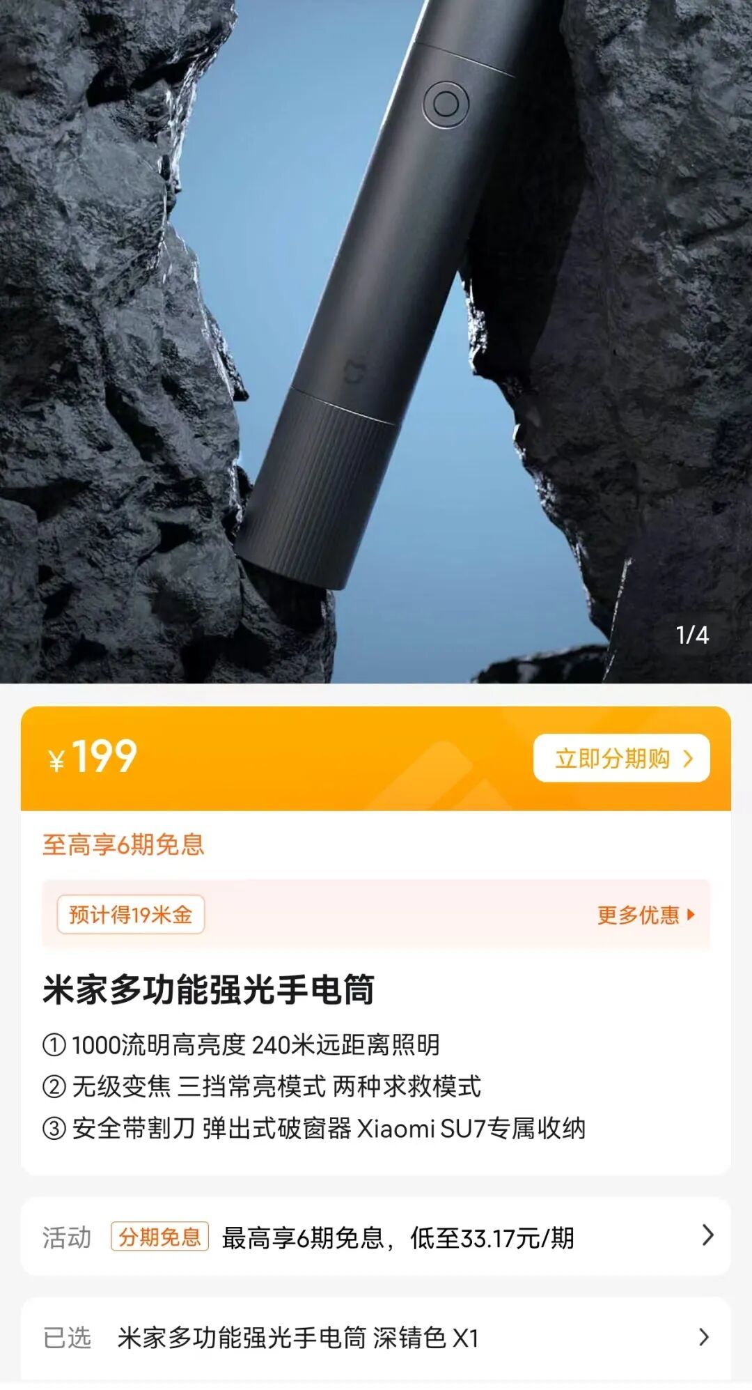 據(jù)悉,“米家多功能強光手電筒”售價199元,除強光手電功能外,還有破窗、安全帶切割等功能。不過,根據(jù)官方描述,這款手電的破窗功能僅針對單層玻璃有效,無法應(yīng)用于雙層夾膠玻璃。小米SU7四面車窗采用單層玻璃,而小米SU7 Ultra使用的是雙層夾膠玻璃。