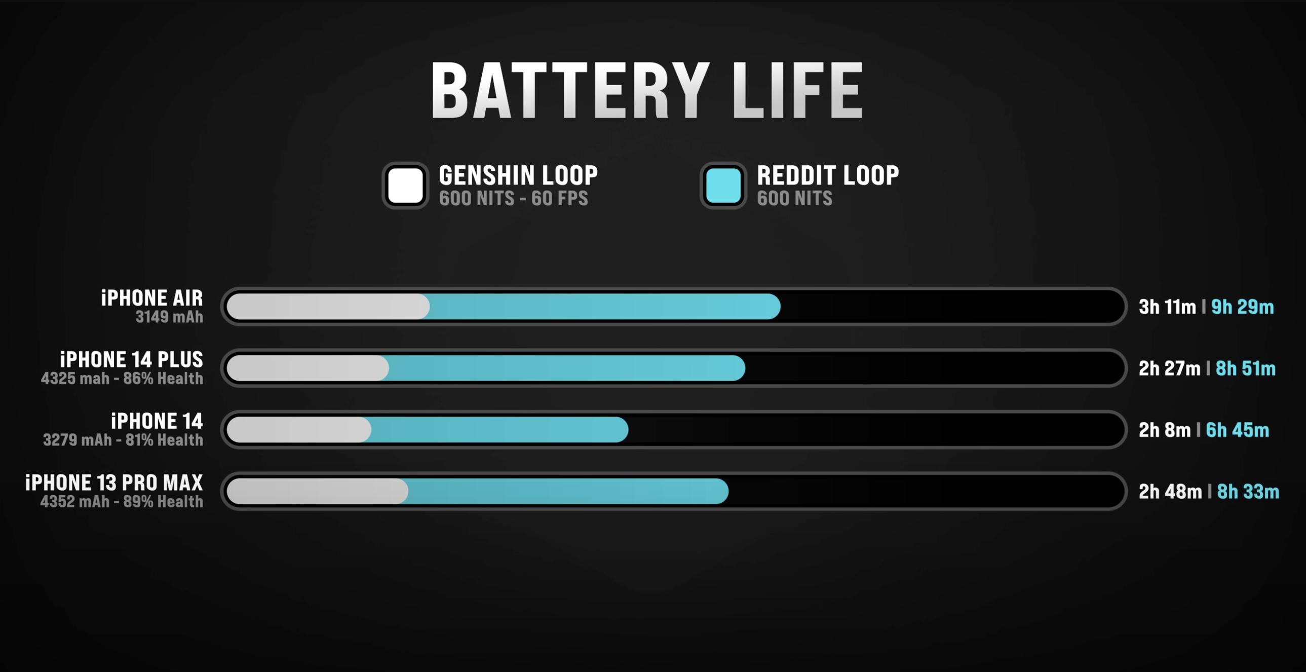 結(jié)論是:海外用戶“中度使用場景”下,iPhone Air續(xù)航夠,但國內(nèi)用戶可能不滿意。